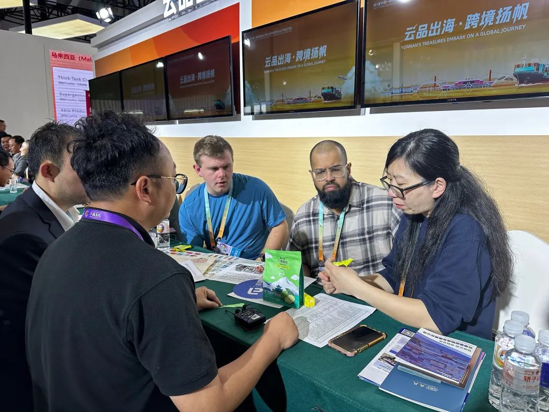 此外,“丽江的花”“丽江纳豆” 及文创品等也吸引多国客商洽谈。丽江市商务局局长夏楠表示,南博会为丽江企业提供全球展销平台,将全力做好对接,助力企业顺利“出海”。“丽系”产品正在通过南博会推向海外,在国际市场上绽放光彩。