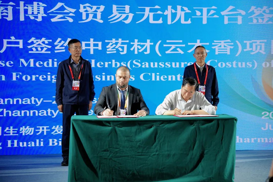 6月20日,在第九届南博会贸易无忧平台的供需对接活动上,丽江华利生物开发药业有限公司与哈萨克斯坦哲赞合伙有限责任公司成功签约中药材(云木香)项目,将出口70吨云木香,价值26.25万美元(约188万元人民币)。哈萨克斯坦哲赞合伙有限责任公司的勒按赞说:“丽江华利生物开发药业有限公司供应的货品质量好,我们已经合作了8年,也是通过南博会认识的。我们将把云木香用在当地市场,主要制作成胶囊药品。”