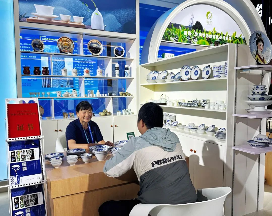 今年南博会7号馆的外贸优品专区是商务部2025年外贸优品中华行的重点活动,按照展品类别设置了食品区、服装区、日用品区等,集中展示省内外优质的外贸产品及品牌形象。丽江永胜瓷业有限责任公司携釉下彩高温瓷亮相,凭借环保耐用等优势备受青睐。这家百年企业不断创新,产品远销海外,2024年出口额达426万元,南博会上已与多国达成合作意向。